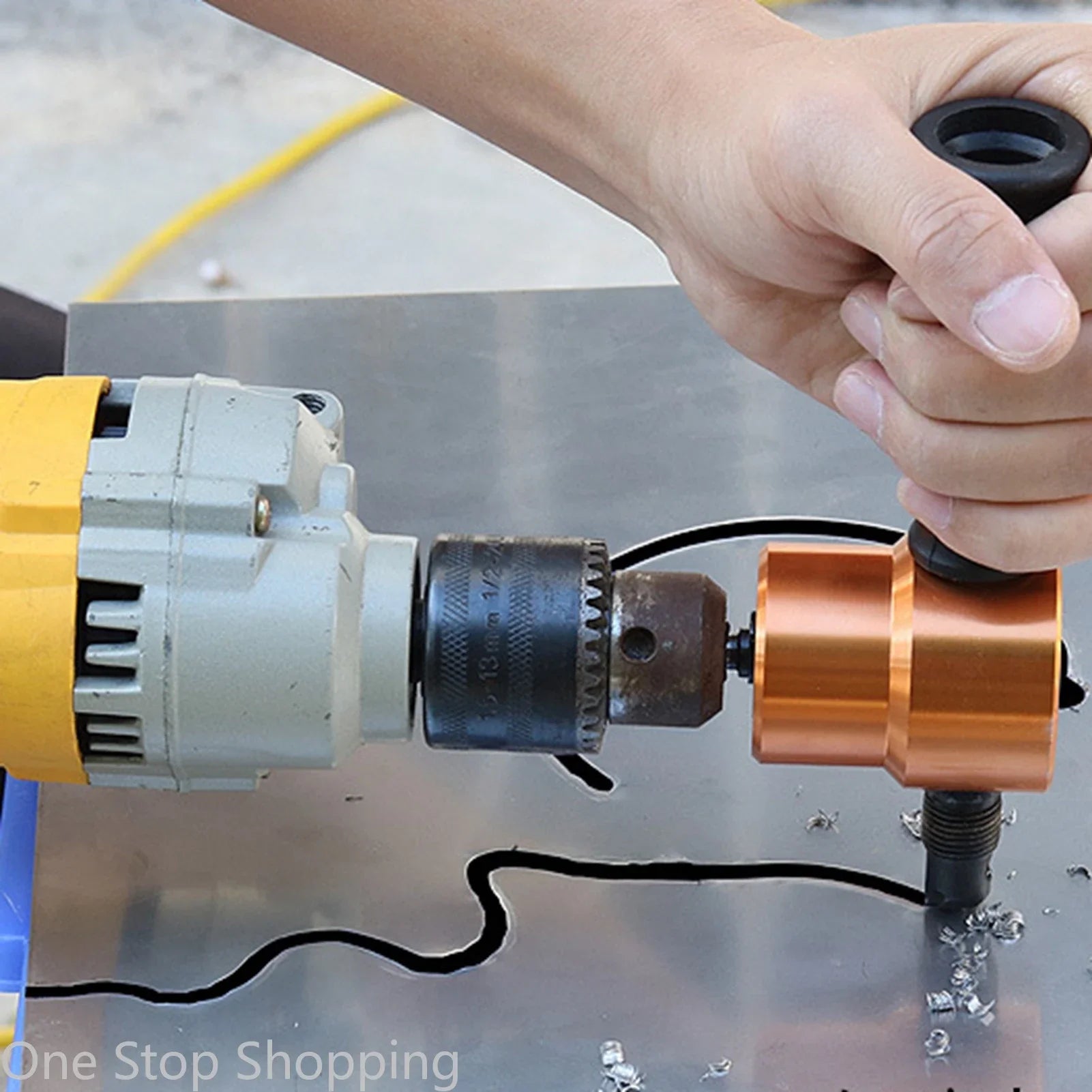 - Conecte o cortador a uma furadeira elétrica, fixando-o no mandril.