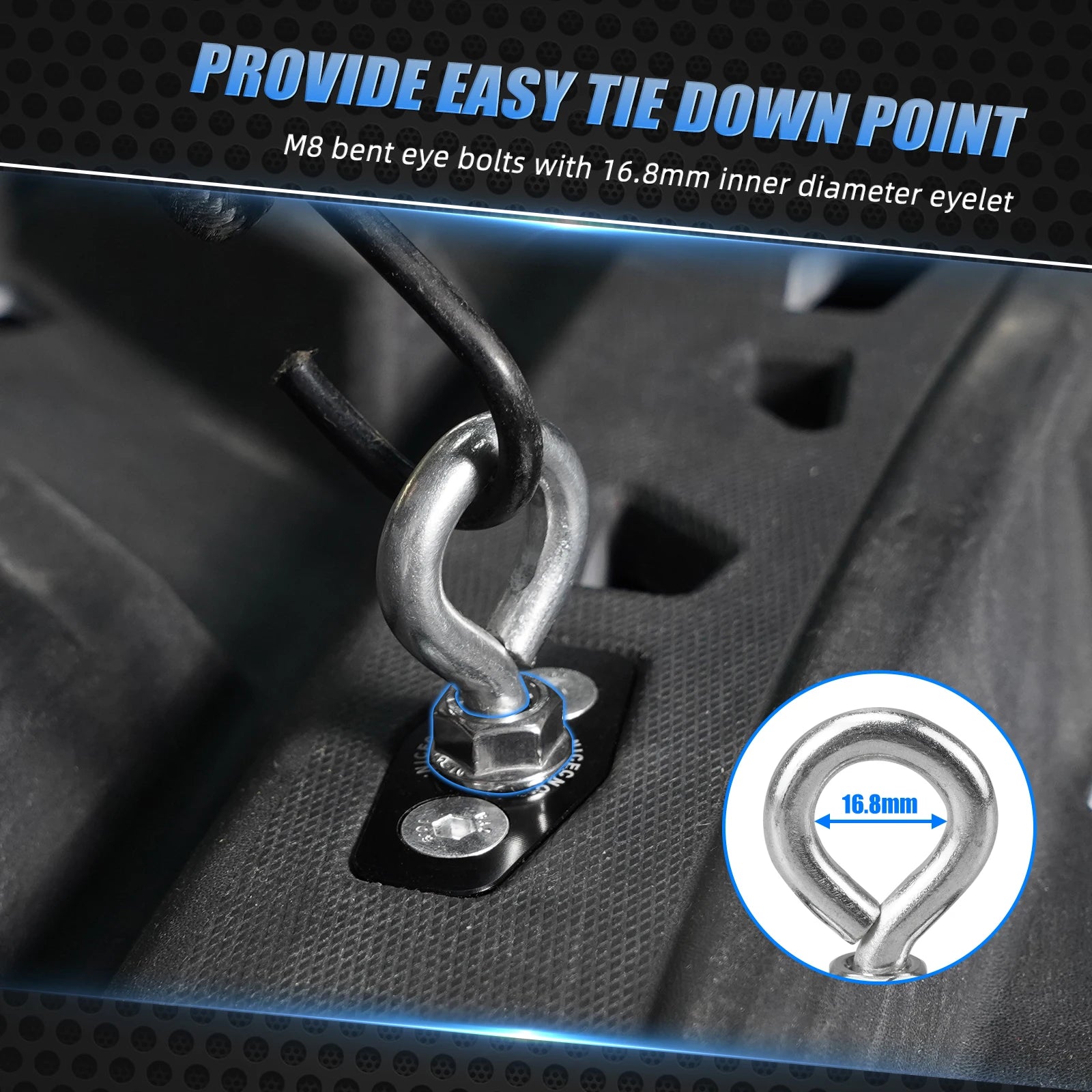- Ponto de amarração prático com olhal de 16,8 mm